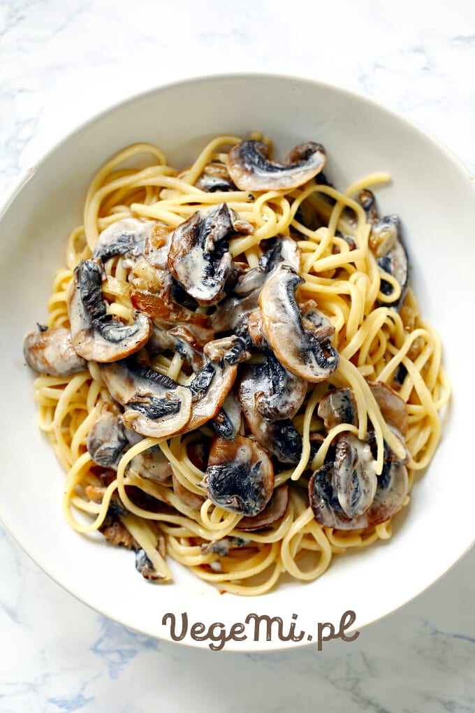 Dzisiejszym przepisem będzie makaron z pieczarkami, jak zawsze wegański. Jest on bardzo prostym, szybkim oraz sycącym daniem, wiadomo makaron, do tego pieczarki, mleko kokosowe i trochę cebuli! Z sosem z jakich grzybów najchętniej zjadasz makaron? Ja lubię z różnymi grzybami ale najbardziej chyba jadam z pieczarkami, rzadziej z mrożonymi grzybami leśnymi. Dlatego właśnie dzisiejszy sos do makaronu został stworzony przeze mnie ze zgrabnych, kształtnych pieczarek. Dodałam do niego również tłuste mleko kokosowe by miał fajny, wygładzony smak i cudowną kremową konsystencję. Jeżeli nie preferujesz sosów z kawałkami grzybów, zawsze możesz zmiksować go blenderem ręcznym na gładką masę. Zapraszam na prosty wegański przepis na makaron z pieczarkami.